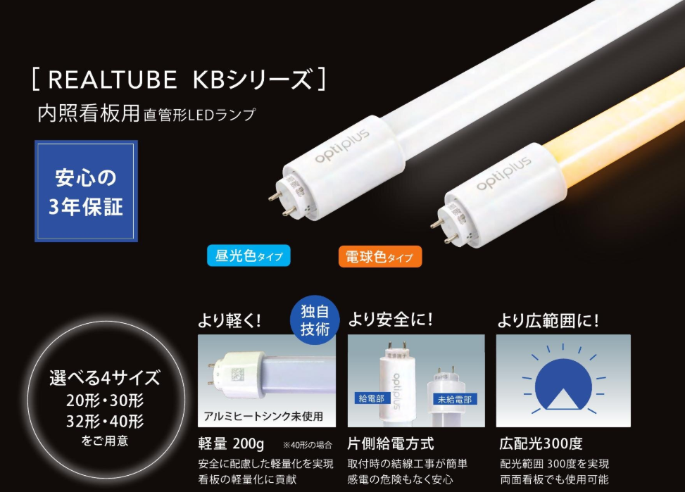 40形タイプ オプティプラス OPTIPLUS 内照看板向けLED直管照明 OPJ-A1200KB・D-V